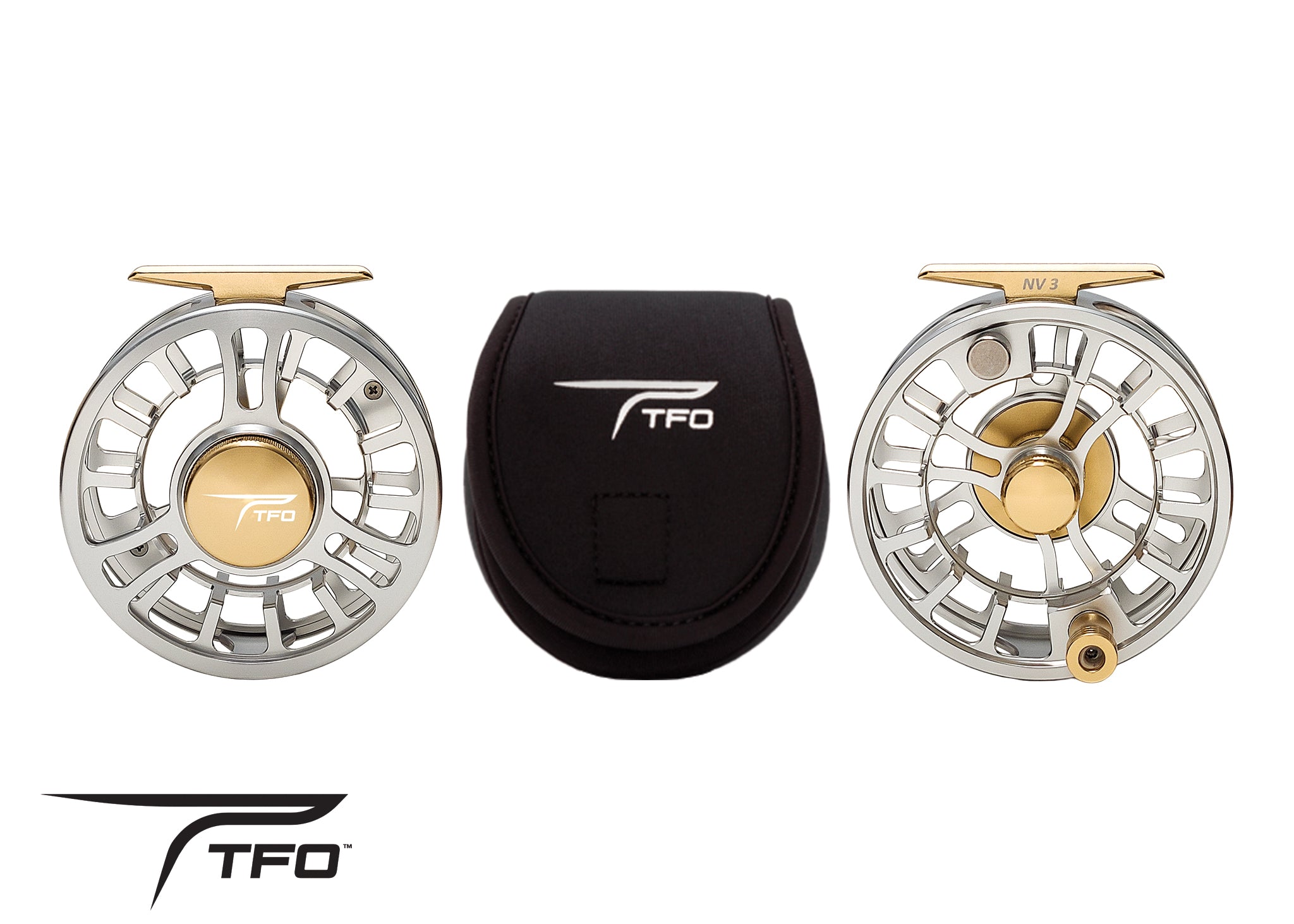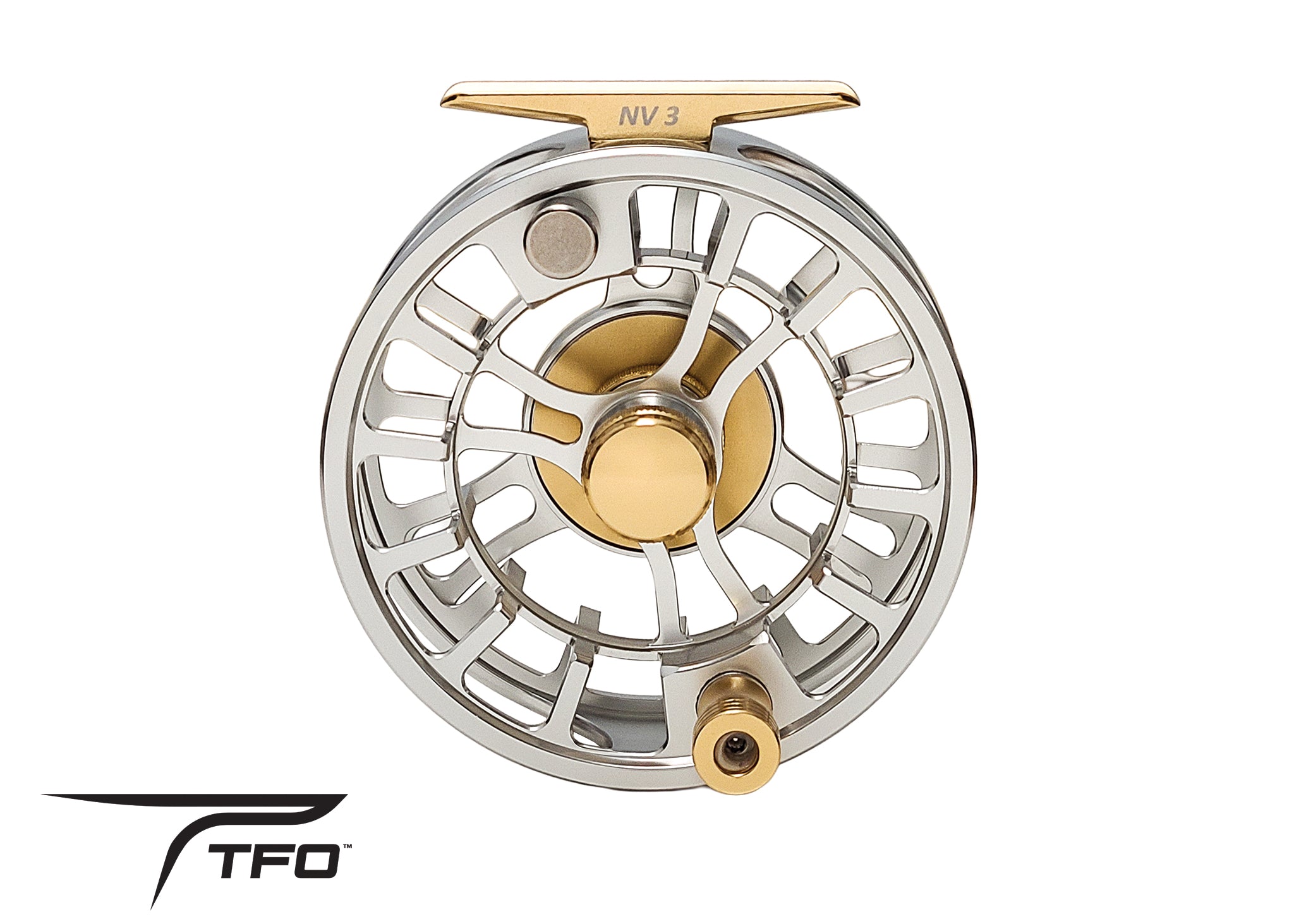 TFO NV Clear Gold Color Fly reels are fully CNC machined from lightweight 6061-T6 aluminum. NV large arbour reels feature a smooth carbon fiber to stainless steel disc drag system (drawbar design) using a one-way stainless steel spindle bearing with an internal cap and O-ring seal. The silent retrieve combined with a line-out clicker is easy to change from left to right-hand retrieve. The new NV reels are clear and gold anodized for a strong, durable finish. Available in 4 sizes for most freshwater fishing challenges.